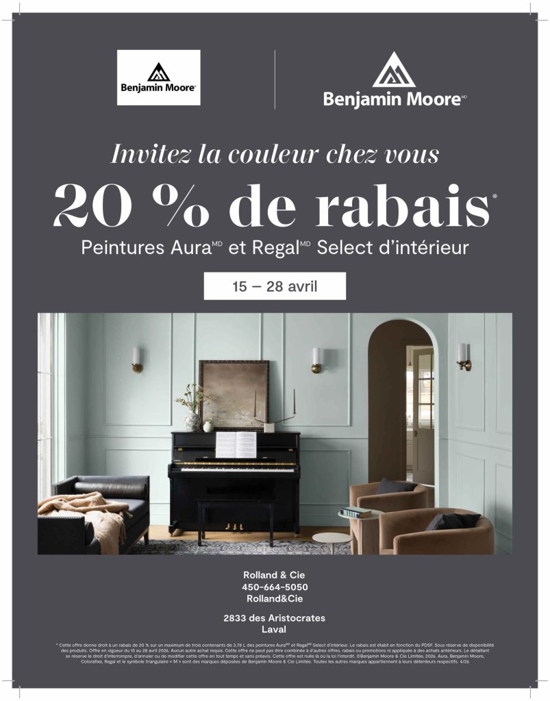 Chez Rolland & Cie Peinture et Décoration, non seulement vous trouverez une vaste gamme des produits Benjamin Moore, mais en plus nous vous proposons des accessoires de décoration tendances tels que du papier peint, de la céramique décorative, des stores, etc. De quoi agencer le visuel et l’esthétisme de votre intérieur à la perfection.